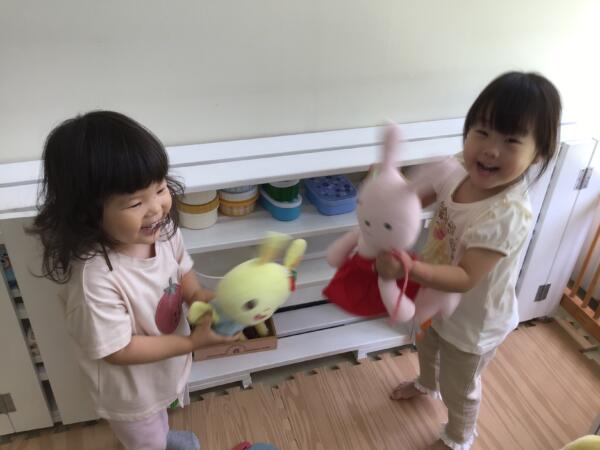 ウサギさん同士で「こんにちは!」お友達と楽しそうに声を出して笑っていました♪