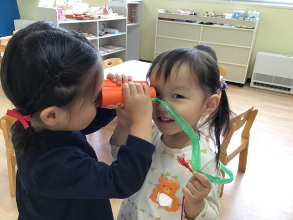 お友達と一緒に望遠鏡を覗き、いつもと違う景色の見え方を楽しんでいました♪