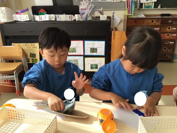 年少さんはシールを貼って可愛く・かっこよくしてくれました♪