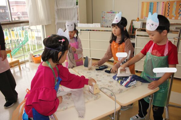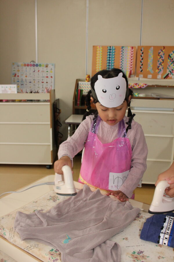 手付きは、まるで本物のクリーニング屋さん✨