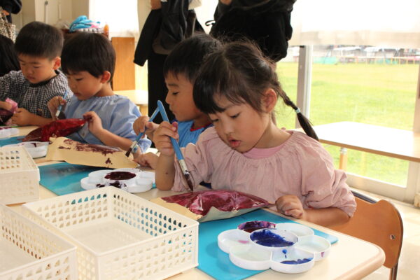 サツマイモの皮は、自分で赤と青を混ぜて本物と同じような色を作り塗りましたよ♪