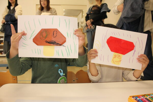 グループの皆で「きのこ」と「くり」を折り紙で作る活動を行いました。