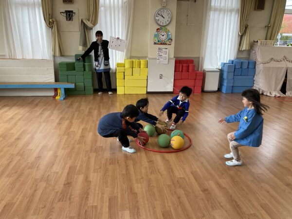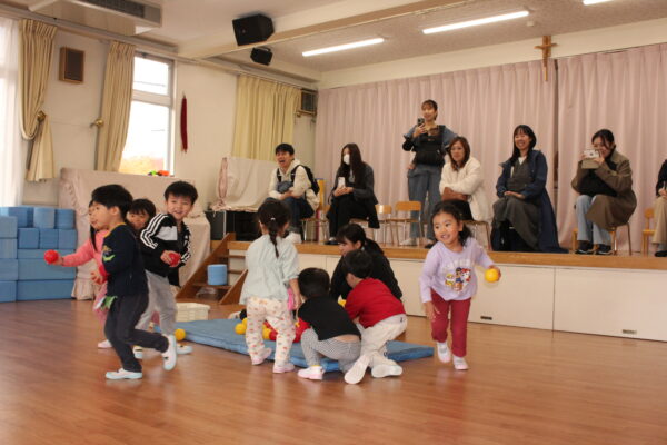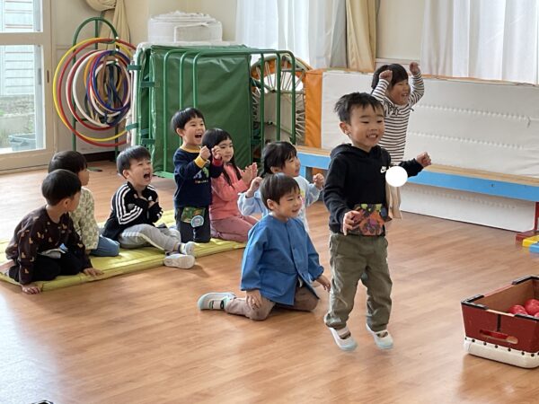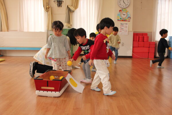 その後はお遊戯室に移動し、クラス対抗のパプリカ集めゲームをしました!