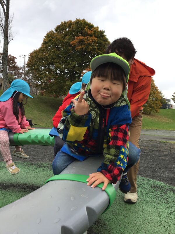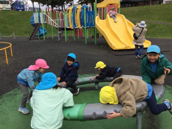 バスの窓から酪農学園大学の牛さん🐄が見えたり、「いつだって僕らは」の大合唱をしたり、「ここ、お泊まり会の時も通った道だね!」とお友達同士の会話も弾み、公園に到着するまでみんなでドライブも楽しみましたよ♪