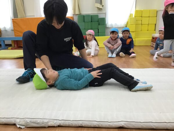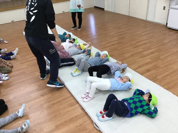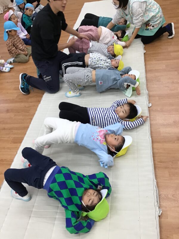 マットにごろり~ん。年長さんがやっていたブリッジ✨できるかな?