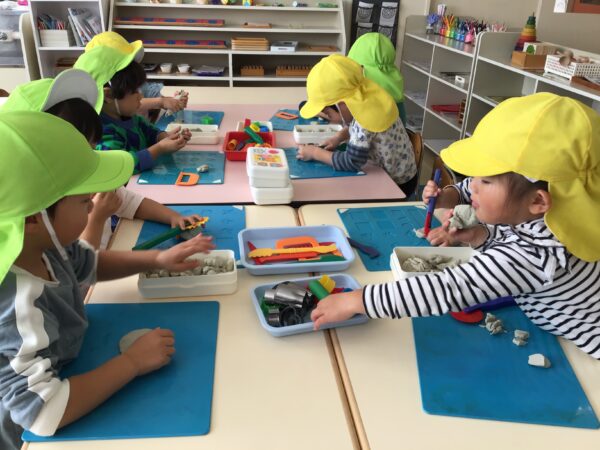 粘土遊びは指先の力を強くするために大切な遊びです。なんとなく触っていた段階から、「これを作ろう!」と明確なイメージを持って作る子が増えてきました✨