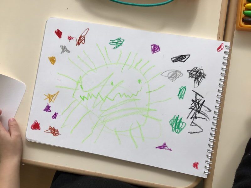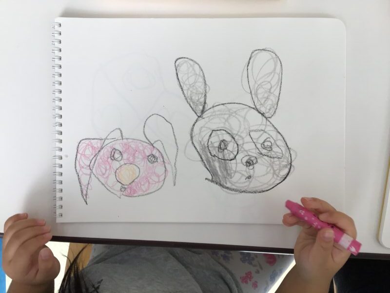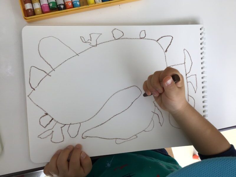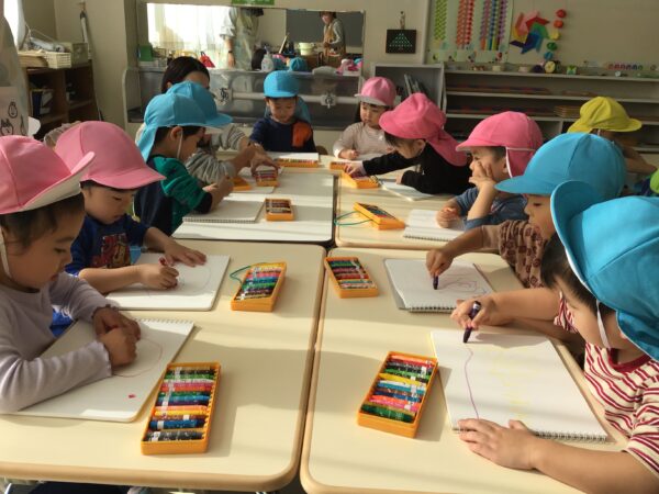 自由遊びの中で頻繁に絵を描いている子もいれば、自由画帳を久しぶりに開いた子もいました。