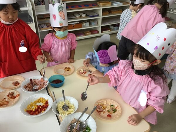 「もう決めた!」とすぐに具をのせていく子、「どの具にしようかな~?」とゆっくり決めている子、