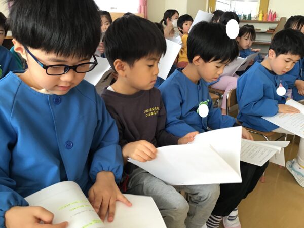 年中さんは劇遊びをしてから、劇で使うあるものを作りました!