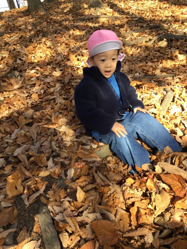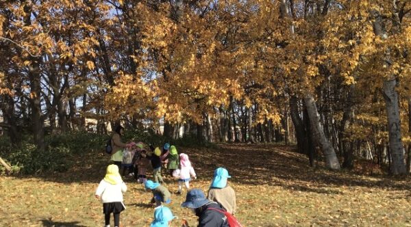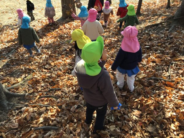 年少さんは、製作に使う「落ち葉」を拾いに栗の木公園におでかけ!