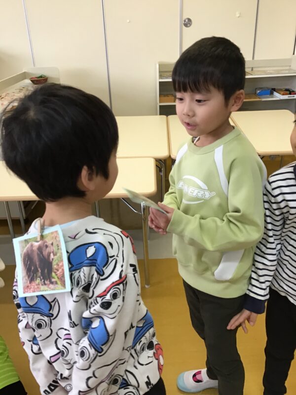 背中には動物カードがついています!つけている本人は何の動物か分かりません。