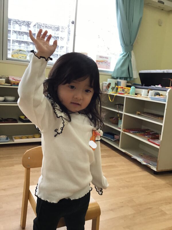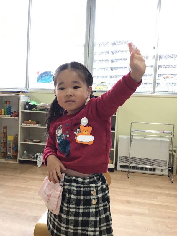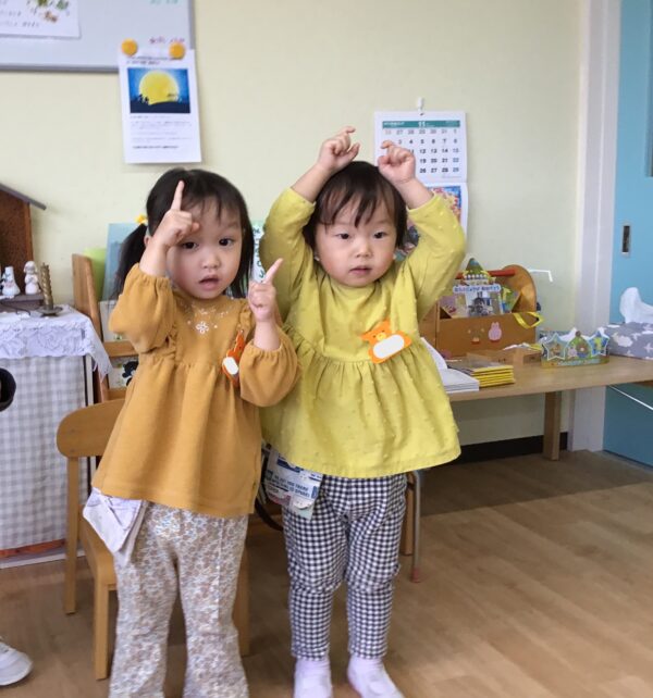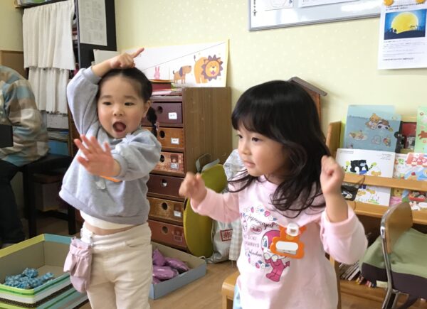 アンパンマンの手遊びが人気で、手遊びの最後の「ワン!」で大盛り上がりです(^^♪