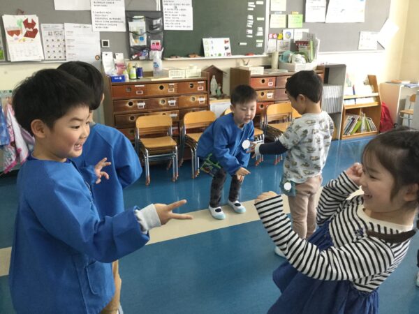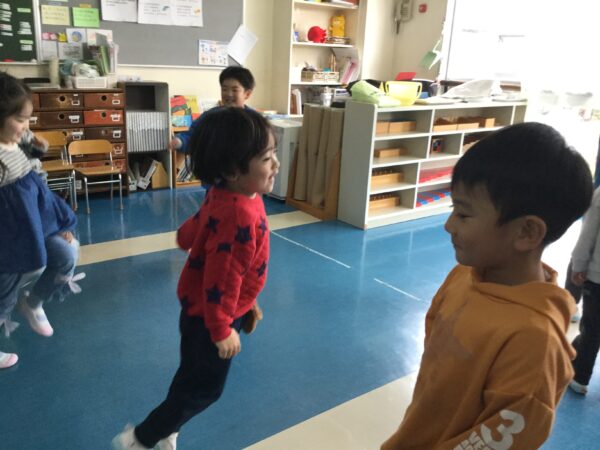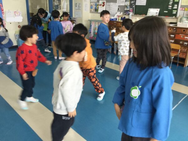 勝ったお友達が、負けたお友達の周りをジャンプして回ります!