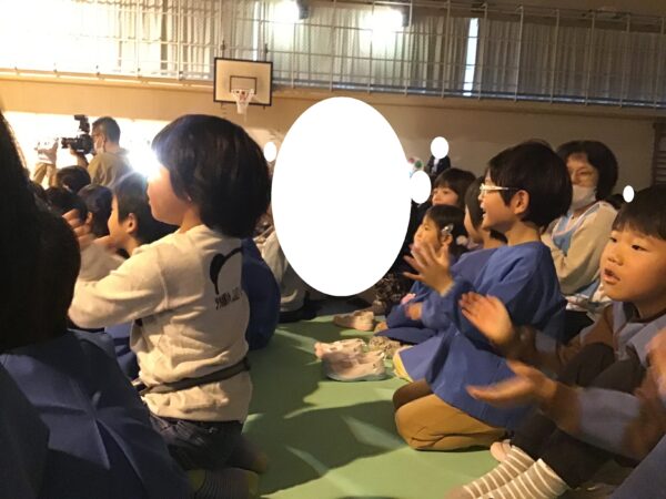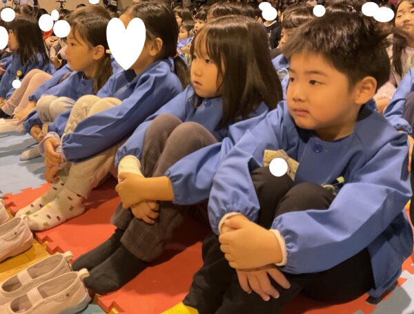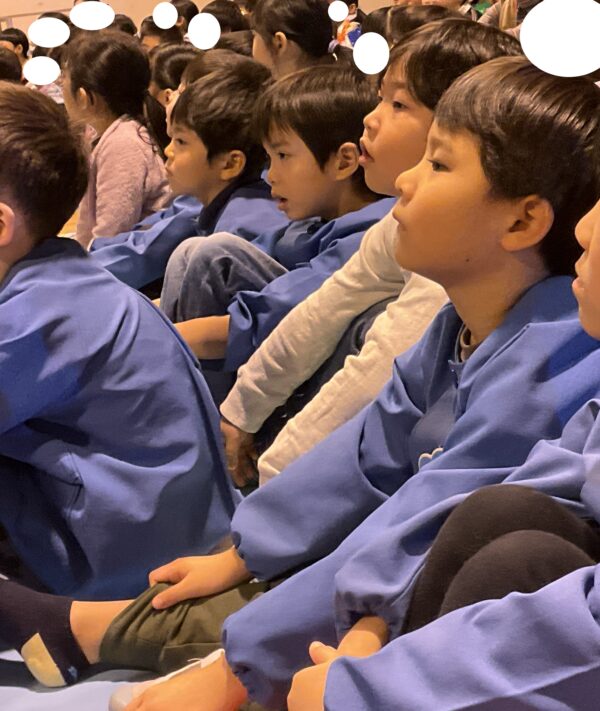 お兄さんお姉さんの素敵な演奏や合唱、ダンスや縄跳びなどの発表に真剣に見る子ども達👀