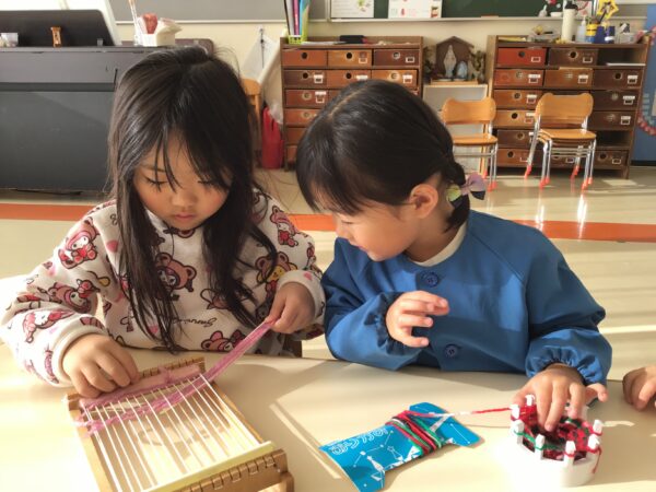 さて、お仕事をするお部屋では、機織りやリリアンを頑張っていましたよ♪