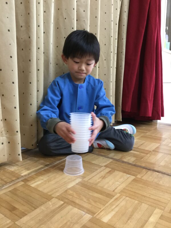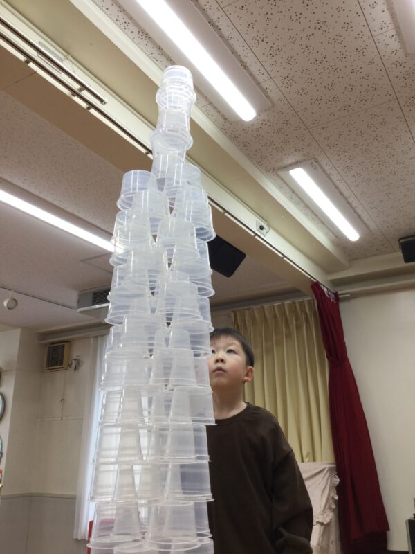 「揺らさないでね!」「ゆっくりのせよう!」と協力しながら慎重に高く積んでいましたよ♪