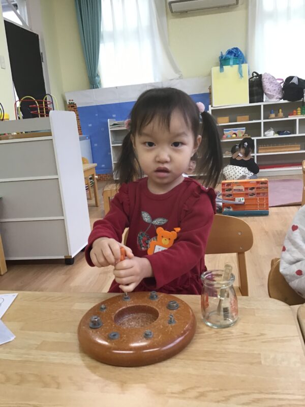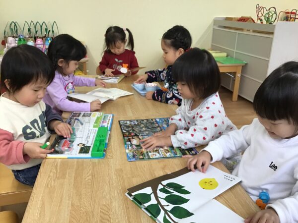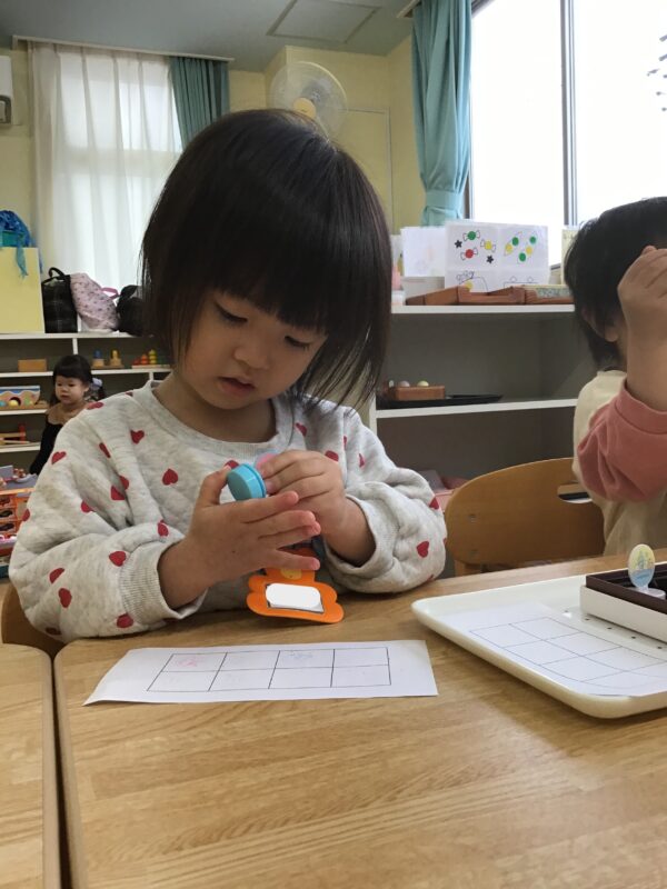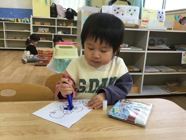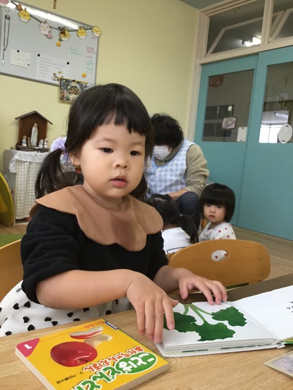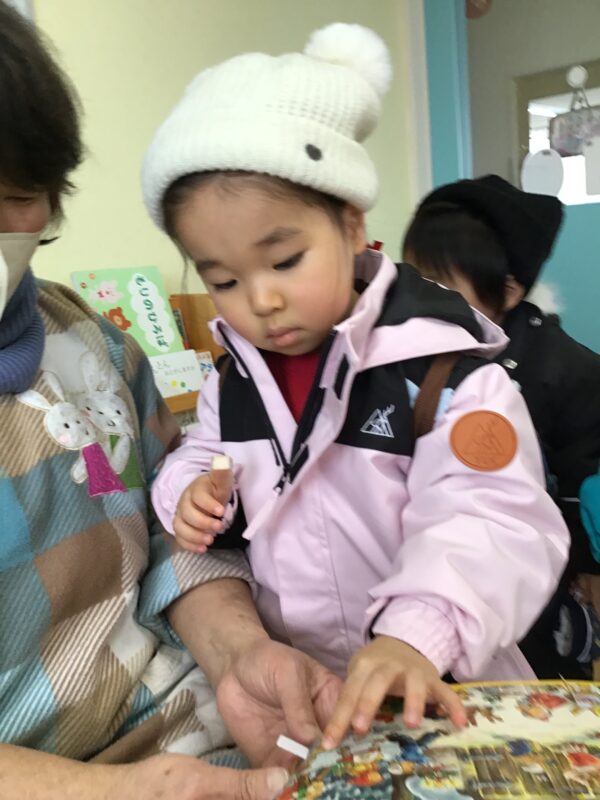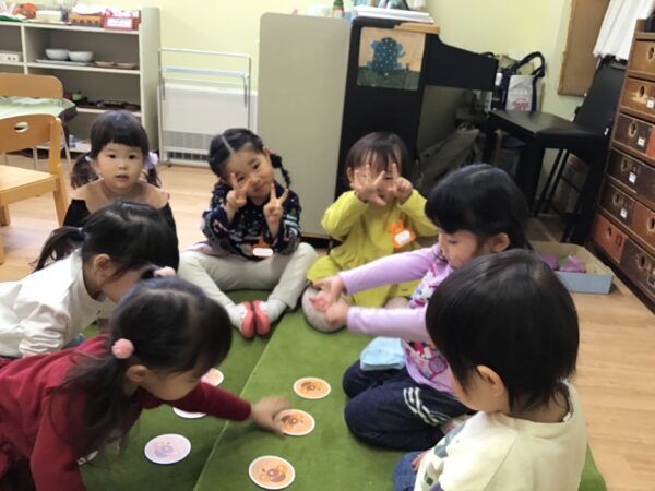 お部屋遊びでは、おもちゃや教具、絵本を集中して最後まで取り組むお友達が増えてきました。