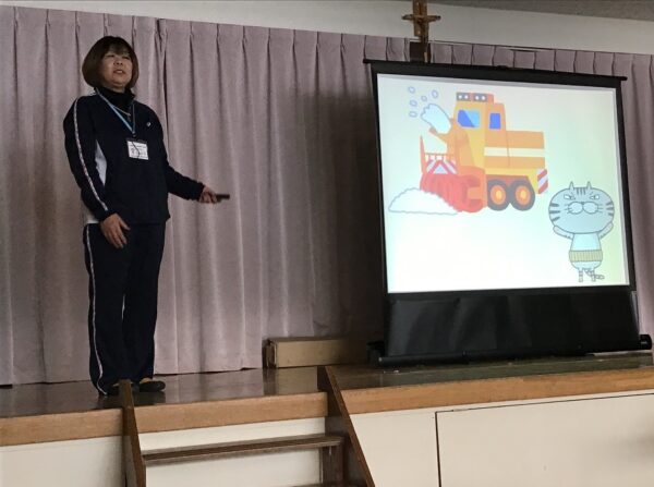 楽しい歌が出て来るお話では、除雪車に近づいたら危ないことや、