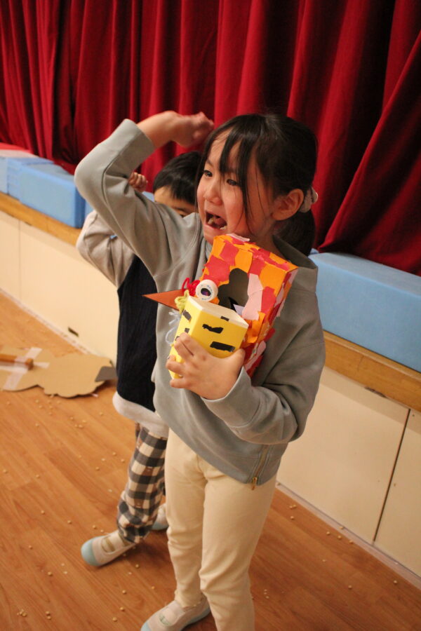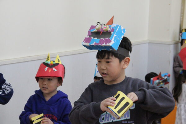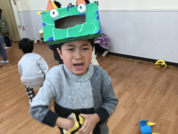 「お仕度したくない鬼を退治したよ~」「ゴロゴロ鬼を退治したよ~」「ゲーム鬼をやっつけた!(ゲームをしすぎる鬼だそうです)」などなど、色々な答えが聞こえてきました👹