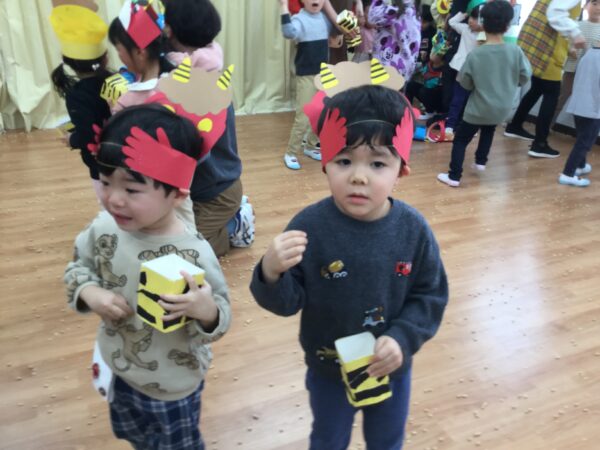 満3・年少さんも初めての幼稚園の豆まき、頑張りました✨