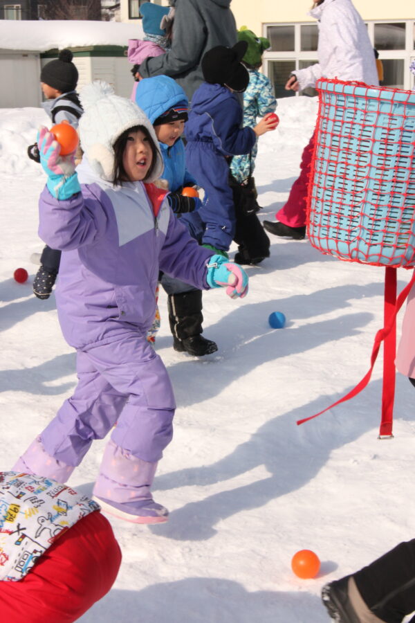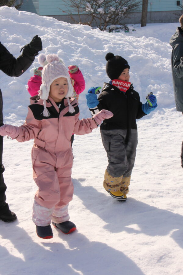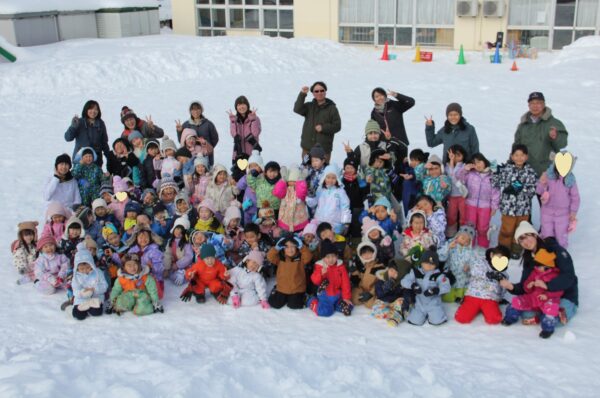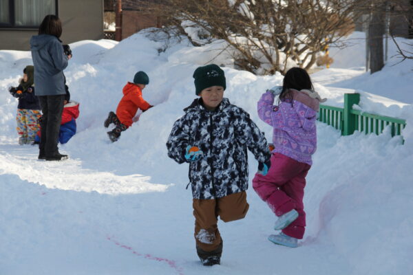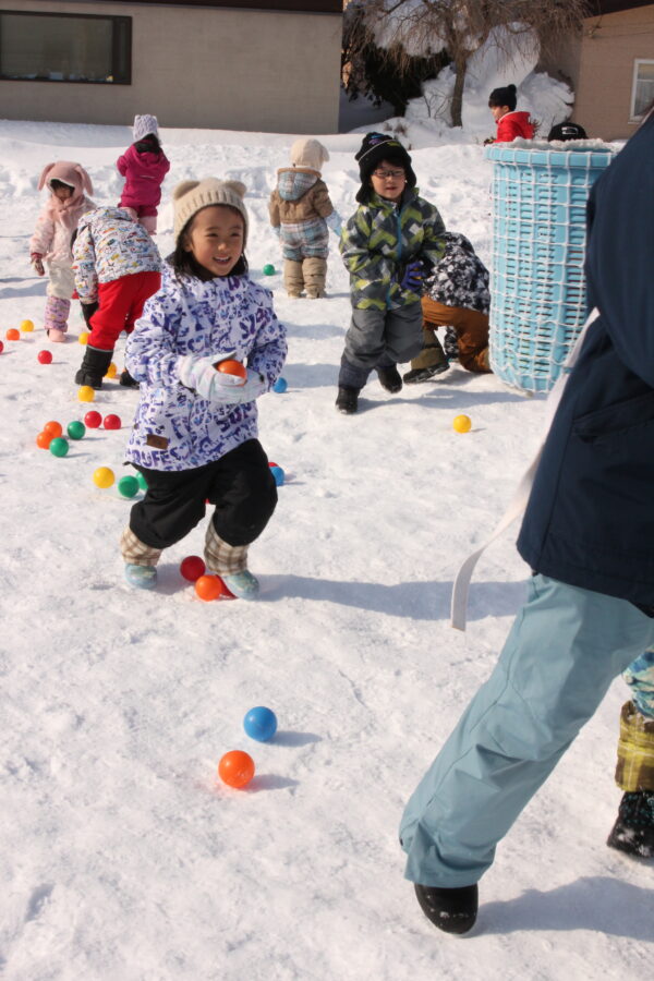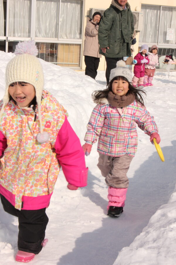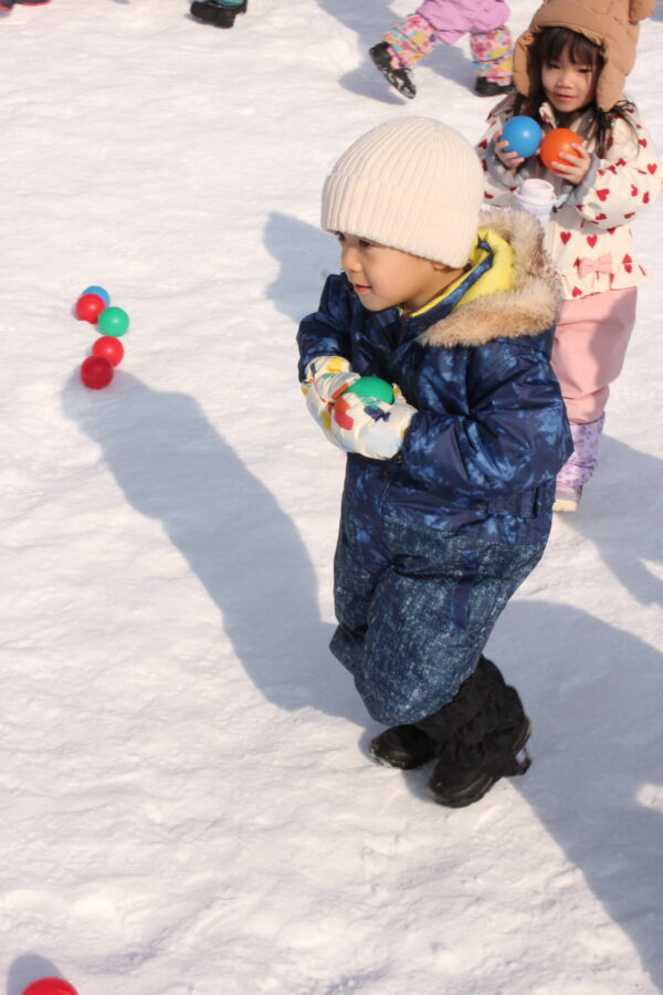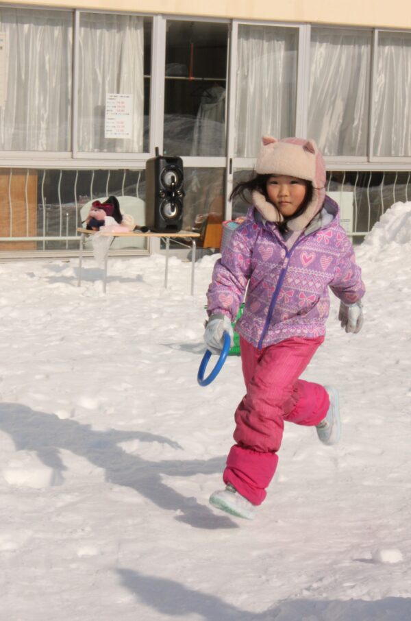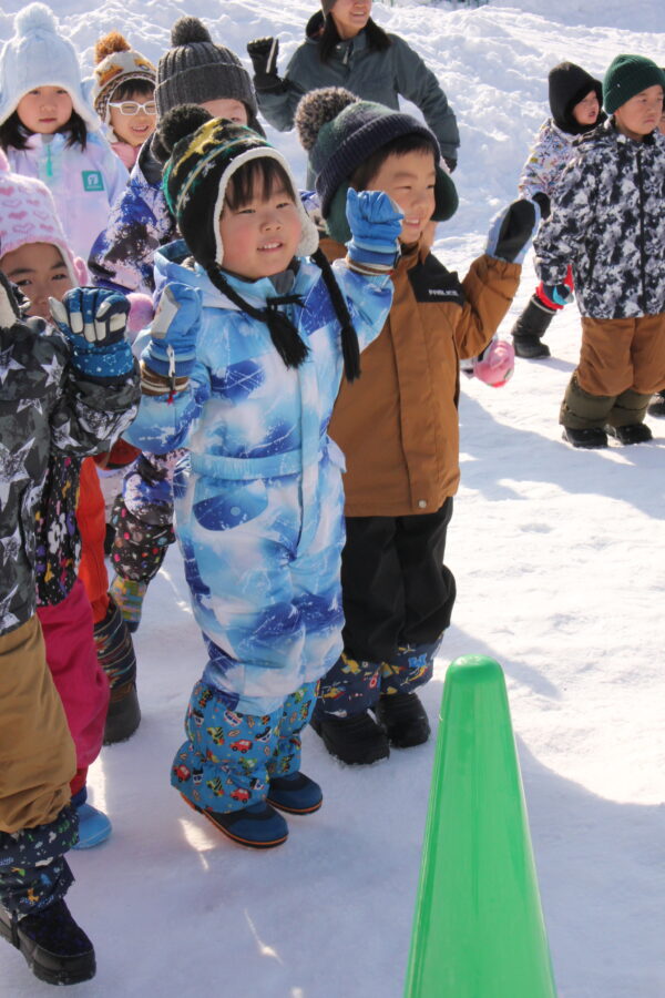 今日は雪の運動会。例年以上に園庭に雪が積もりましたが、無事に今年も行うことができました。