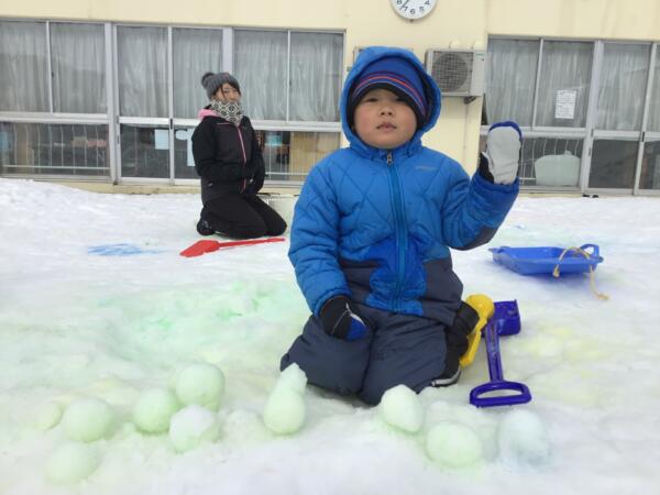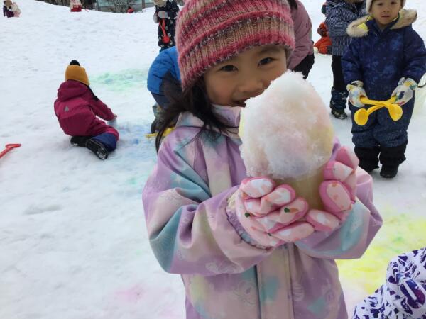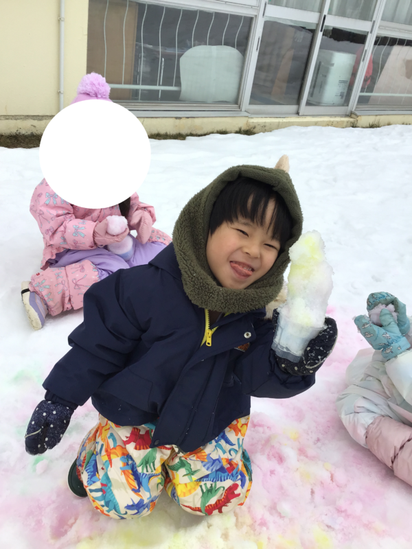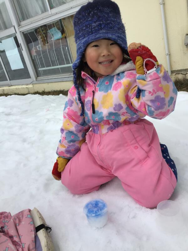 今日は年少さんと年中さんでちょっと特別な雪遊びをしました♪