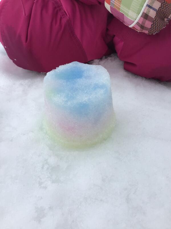 色水を雪に掛けると、とってもきれいな雪に変身!