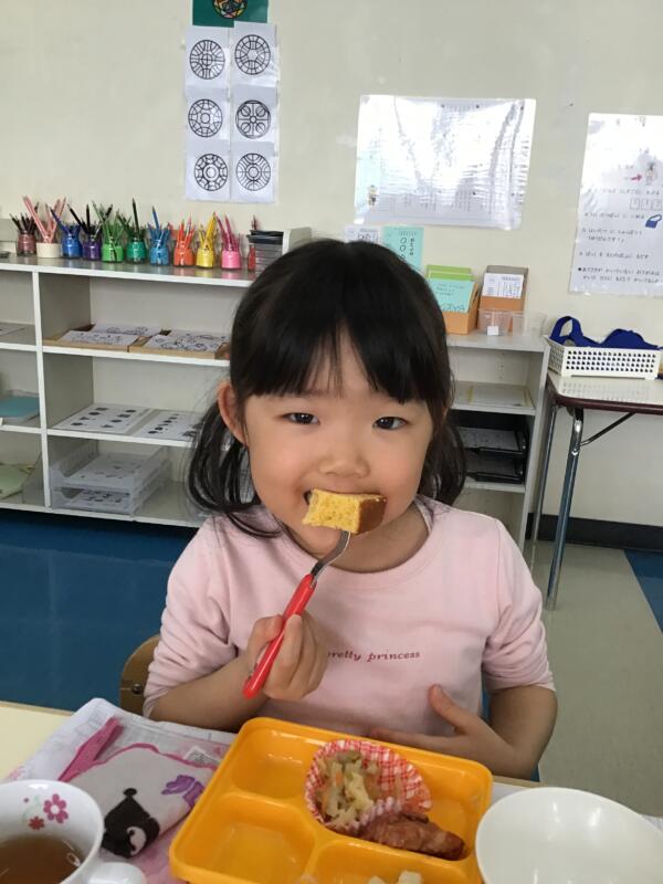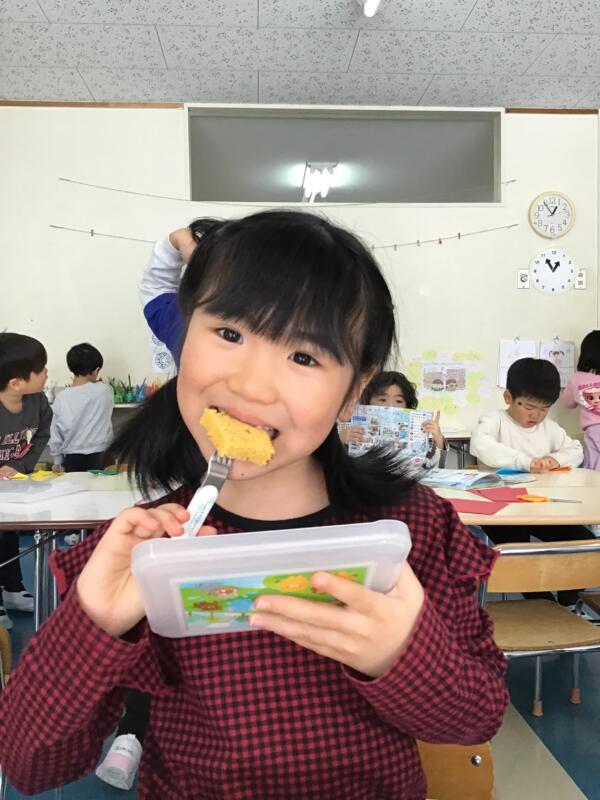 作ったカステラは、昼食のデザートにみんなで食べましたよ♪