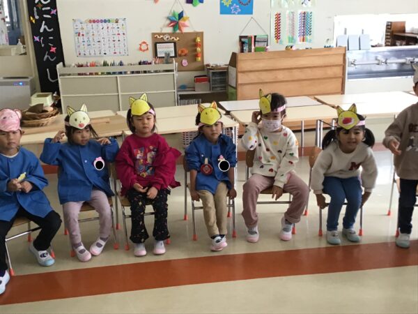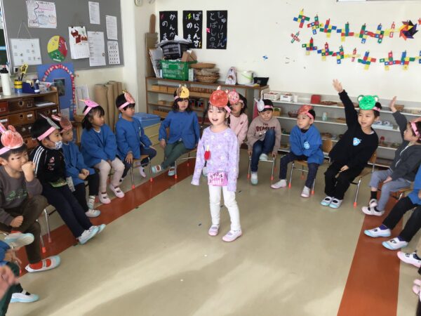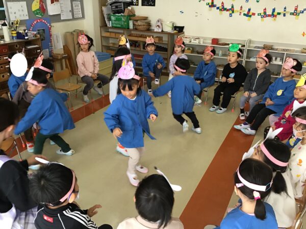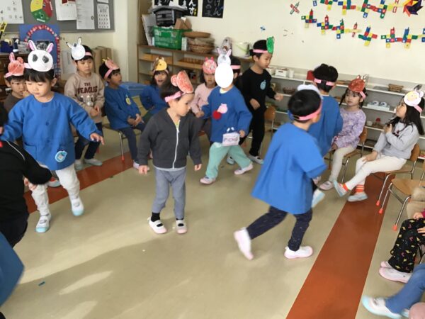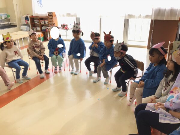 今日の年中さんは、劇の練習を頑張った後に「どうぶつバスケット」のゲームをしました♪