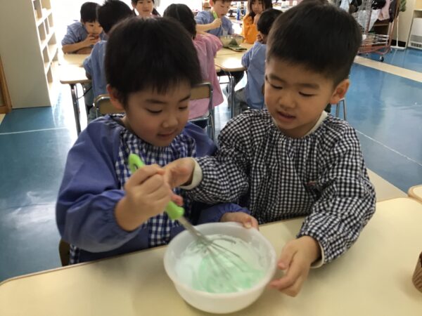 本物の生クリームのように、みんなで順番にまぜまぜ・・・