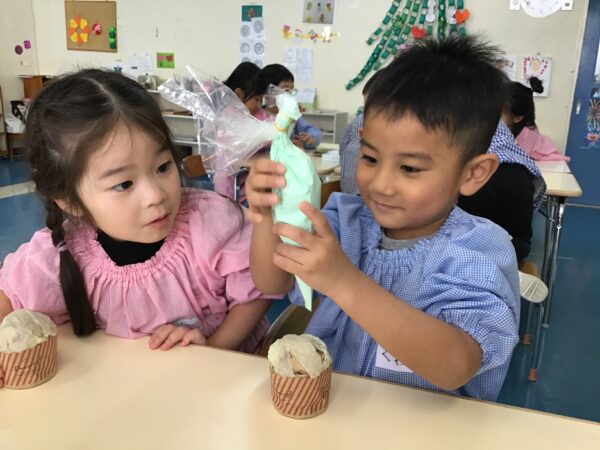 次は何をのせようかな?いちご2つのせていい?と思い思いに可愛く作ることが出来ました!