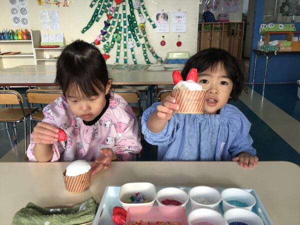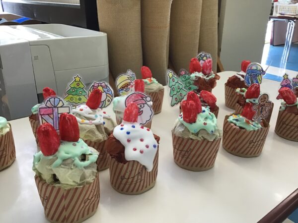 先日、もりぐみでクリスマスカップケーキ製作を行いました!