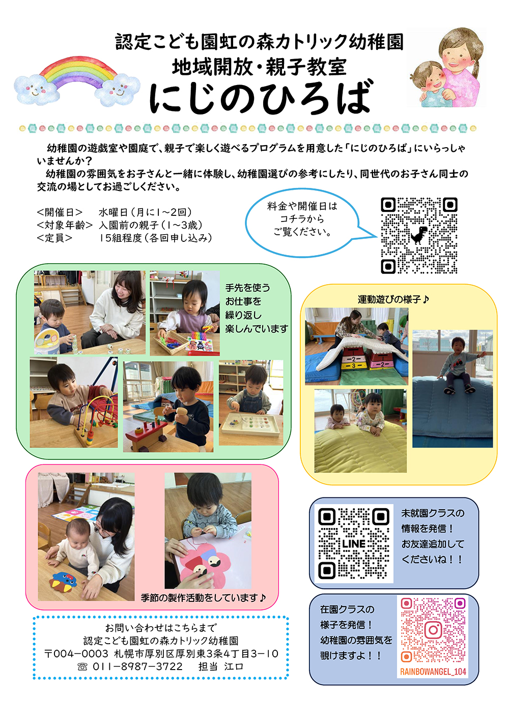 虹の森カトリック幼稚園 TEL 011-897-3722・FAX 011-897-3732